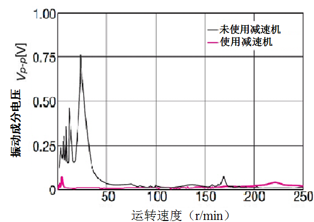 為了避開容易產生振動的低速領域,可以先提高電動機的轉速,再利用減速機降低轉速,避開共振領域,在低速時達到抑制振動的效果。