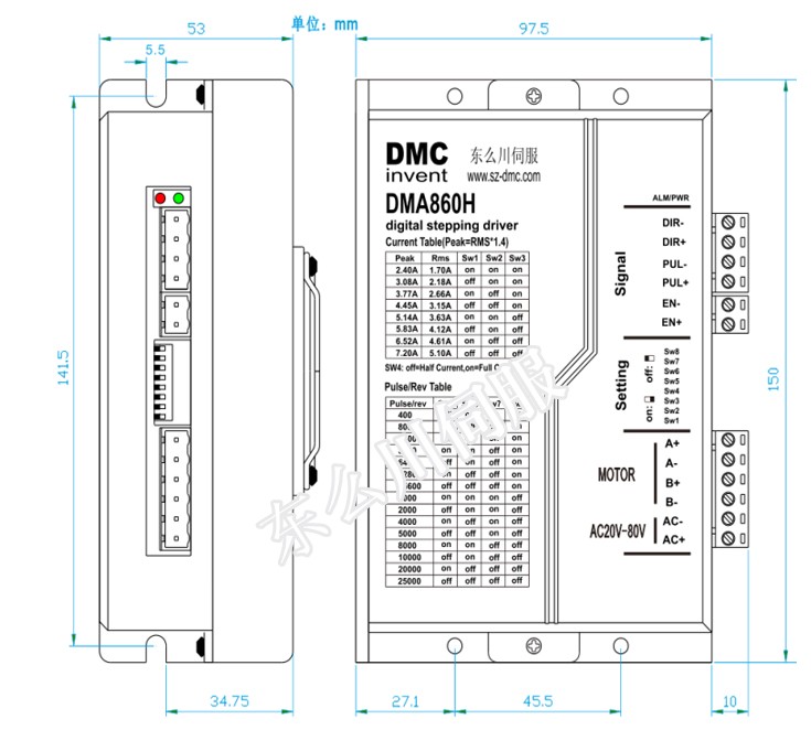 ● 低壓兩相步進驅(qū)動器DMA860H體積精巧、效率高;優(yōu)秀的電流控制算法使電機達到最佳的輸出表現(xiàn)