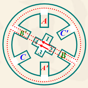 (1)BB' 磁場對 2、4 齒有磁拉力,該拉力使轉子順時針方向轉動。